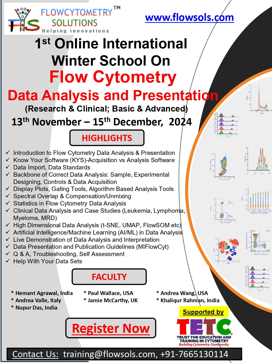 1st Online International Winter School On Flow Cytometry Data Analysis & Presentation, 13th Nov – 15th Dec 2024